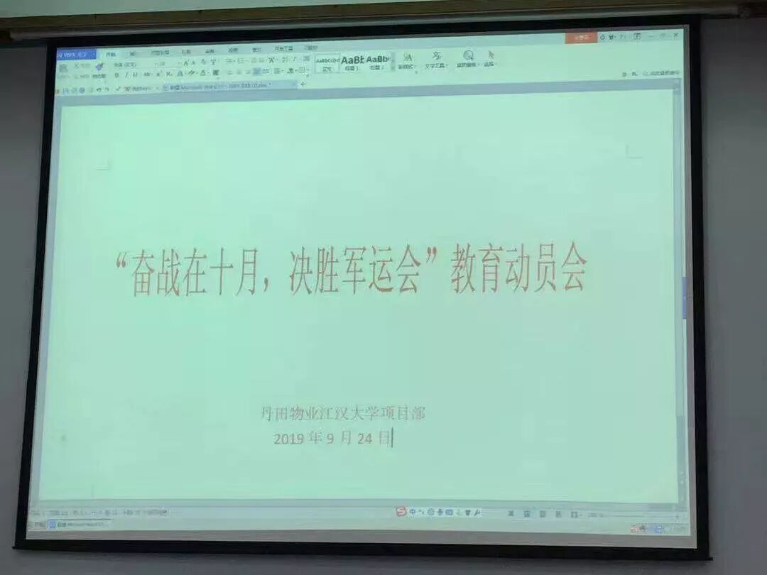 第七届世界军人运动会于10月18日在武汉开幕,本次军运会共有109个国家的9308名军人运动员参加。江汉大学承办了男子排球竞赛项目,丹田物业江大项目部承担了该项赛事的清废工作。截止到目前为止,在清废保障方面圆满完成任务,受到好评。