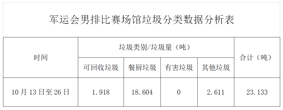 我校男子排球比赛场馆的垃圾分类工作于8月28日正式开展,按照军运会生活垃圾分类工作设施标准配齐了分类收集容器,容器颜色及标识准确。加强宣传设施信息推广,组建生活垃圾分类督导员、志愿者队伍,引导军运会全员参与生活垃圾分类。按照生活垃圾分类工作要求,积极学习分类工作推进较好的单位,结合自身实际不断完善垃圾分类工作,确保分类工作规范运行。