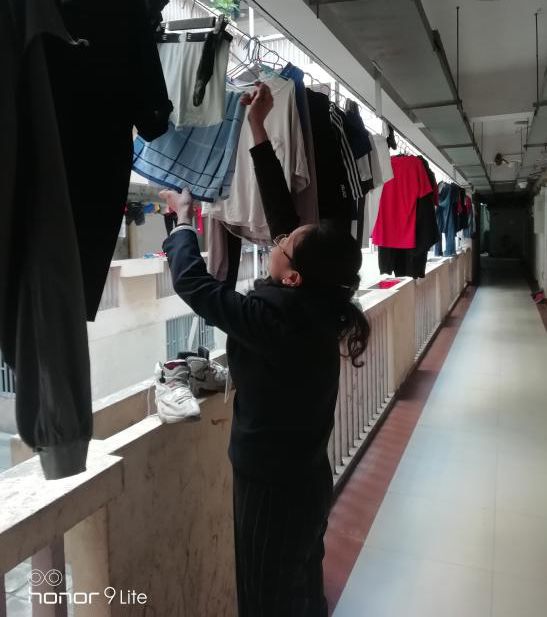 看到天要下雨了就帮同学们收衣服;